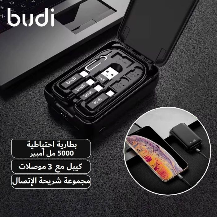 مجموعة متكاملة 6 في 1 بطارية احتياطية 5000 مل أمبير مع كيبـل بيانـات وحافظـة بطاقة SIM من Budi