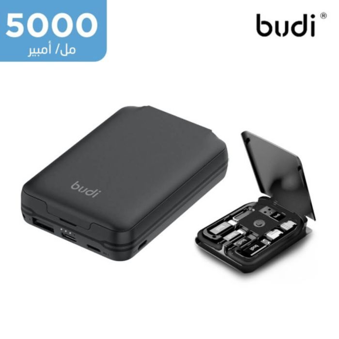 صفقة اليوم هي مجموعة متكاملة 6 في 1 بطارية احتياطية 5000 مل أمبير مع كيبـل بيانـات وحافظـة بطاقة SIM من Budi, مجموعة اكسسوارات مرتبة بطريقة أنيقة لا تشغل اي حيز عند التخزين وموفرة للمساحة