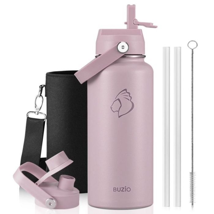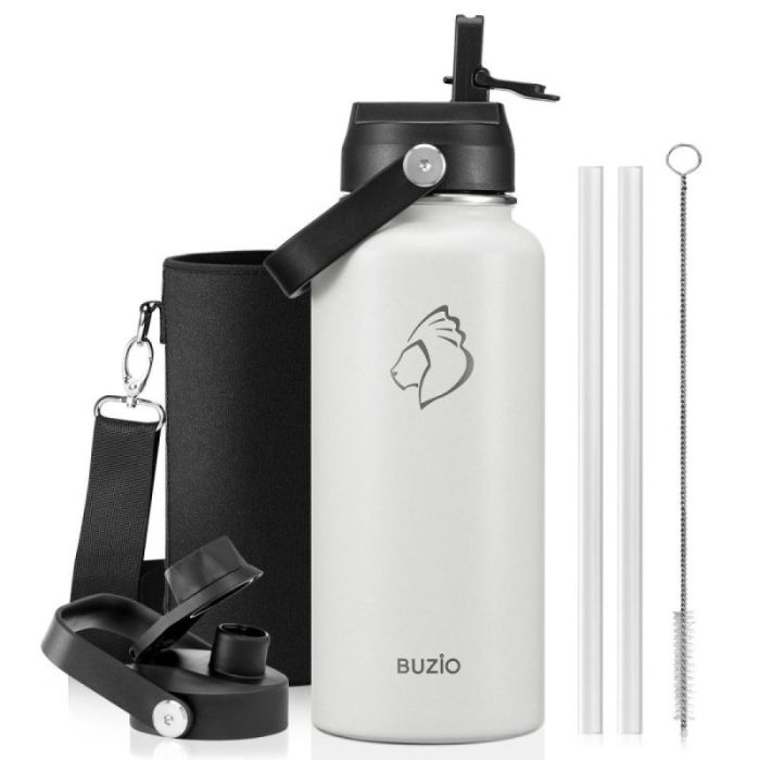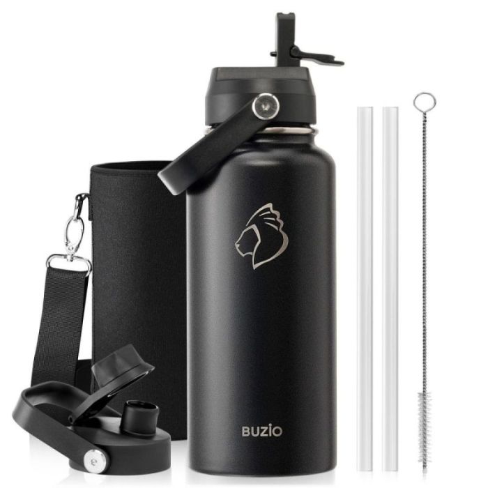 - زجاجة مياه معزولة بغطاءين وحقيبة حماية 1 لتر من Buzio