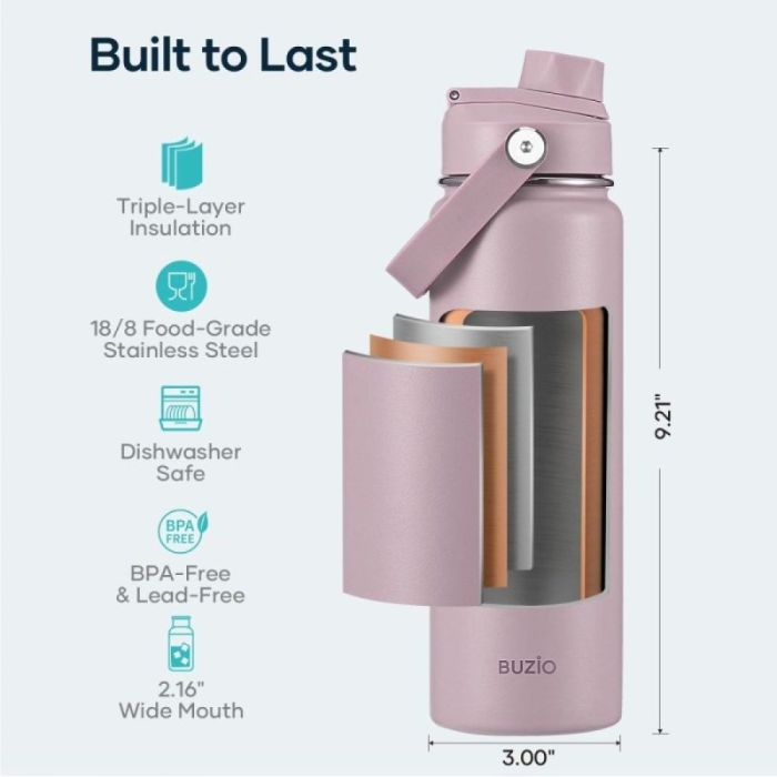 صفقة اليوم هي زجاجة مياه معزولة بغطاءين وغطاء حماية 700 مل من Buzio