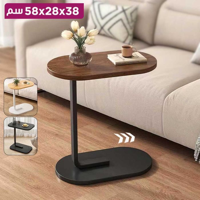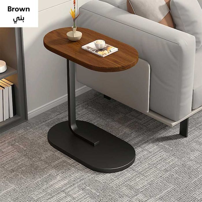 - طاولة جانبية خشبية شكل حرف C بإطار معدني