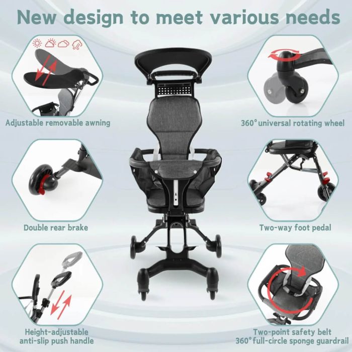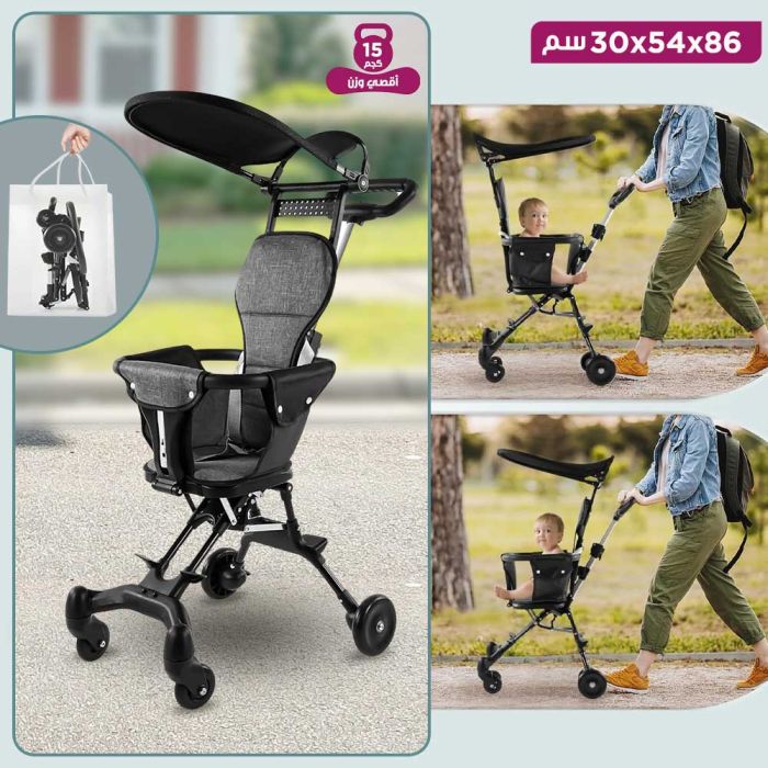 اجعل رحلاتك مع طفلك أكثر راحة وأماناً، عربة أطفال قابلة للطي توفر لك تجربة تنقل مريحة وآمنة مع طفلك. تصميمها الخفيف والعصري مناسب لكابينة الطائرة، مع مقبض بارتفاع قابل للتعديل وإمكانية تبديل وضعية الجلوس في اتجاهين وعجلات دوارة ناعمة بزاوية 360 درجة توفر سهولة في الحركة، مع مسند ظهر مريح، قبضة غير قابلة للانزلاق، والسياج الآمن يجعلها الخيار الأمثل لمن يبحثون عن الراحة والأمان، مع مظلة تحمي طفلك من الأشعة الضارة، كما يمكنكم طيها بسهولة لتناسب حقيبة الظهر بفضل آلية الطي بيد واحدة
