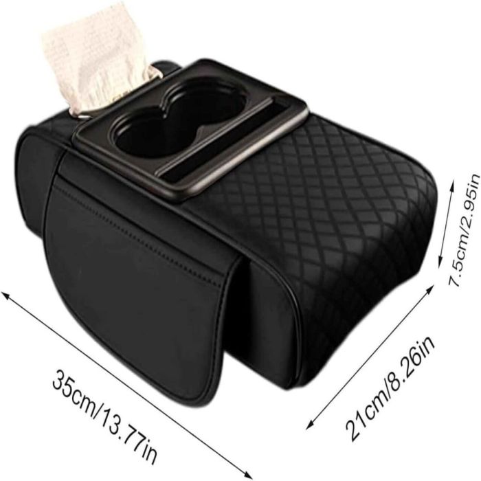 - وسادة مسند ذراع للسيارة مع تخزين وستاند للأكواب