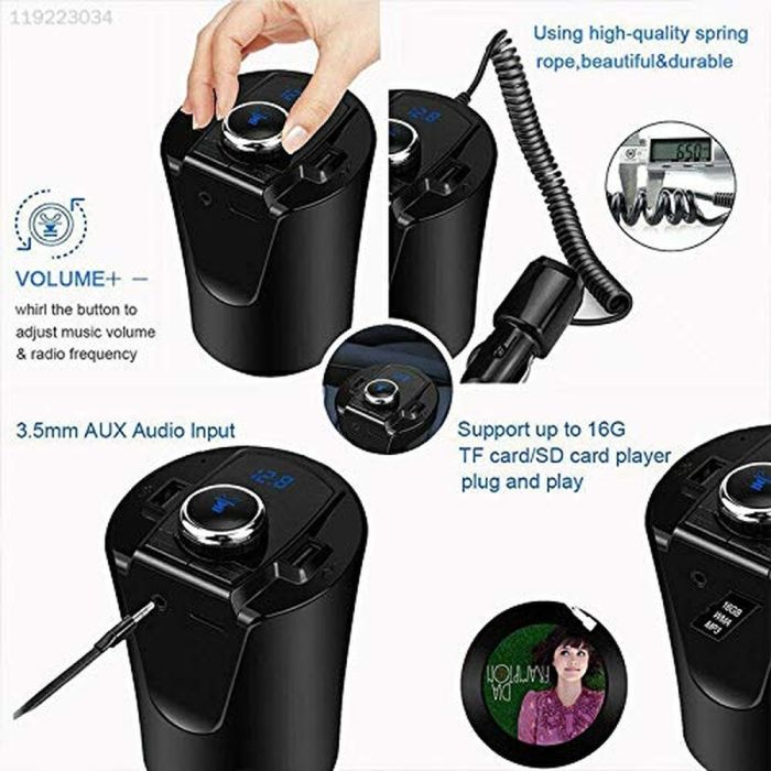 - جهاز إرسال FM للسيارة مع بلوتوث + مشغل موسيقى + شاحن USB