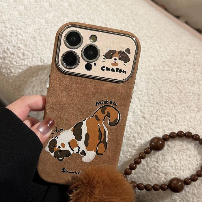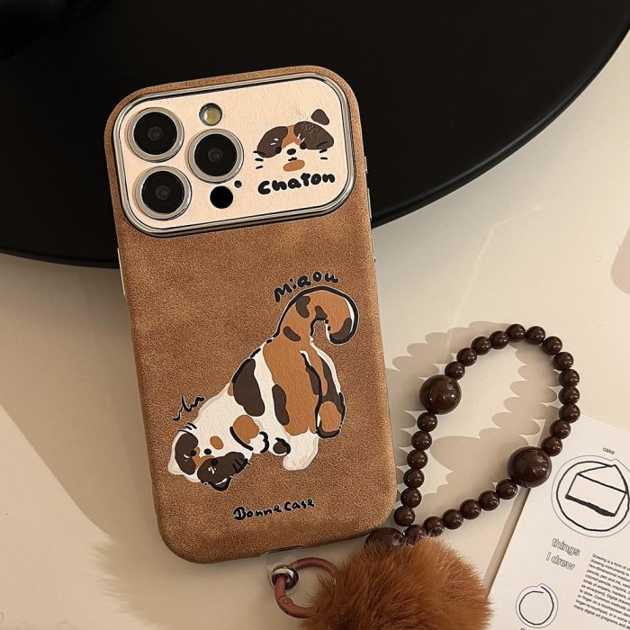 - غطاء حماية بتصميم قطة كارتونية مع حزام خرز لهاتف iPhone