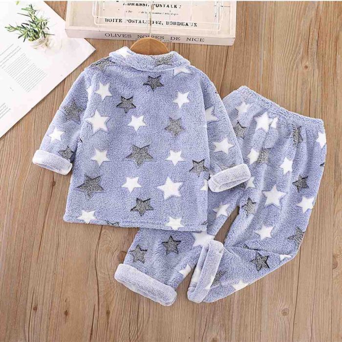 بيجامة فلانيل للبنات تضيف لمسة مرح ودفء لوقت النوم. مصنوعة من فليس كورال ناعم يمنح راحة مثالية على البشرة ويحافظ على دفء صغيرتك في الليالي الباردة. خيار مثالي للاستمتاع بنوم مريح أو للارتداء داخل المنزل بإطلالة جذابة وناعمة.