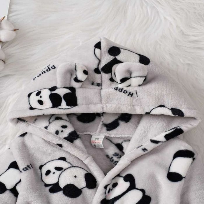 صفقة اليوم هي روب حمام مزخرف بغطاء رأس للأطفال- رمادي - 3-4 سنوات