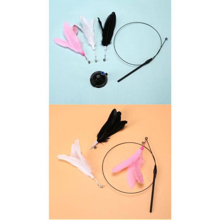 عصا ريش للقطط بقاعدة شفط قوية، تتميز بريش خفيف الوزن يحفز غريزة الصيد الطبيعية، وقاعدة شفط ثابتة لتثبيت آمن