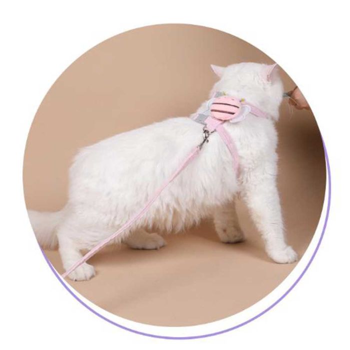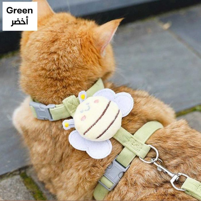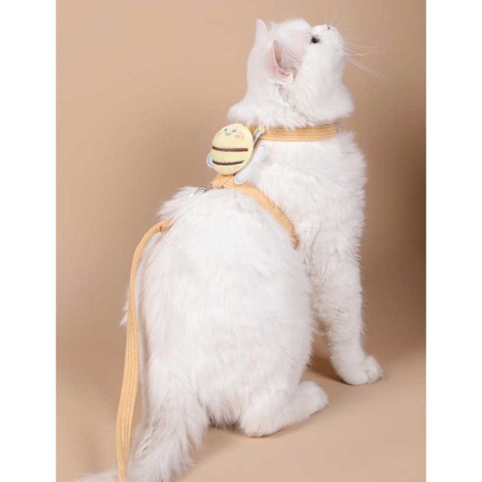 حزام للقطط بتصميم نحلة مع حبل، مصنوع من خامة مريحة، يساعد على تحكم أفضل أثناء المشي، مع توفير تهوية جيدة