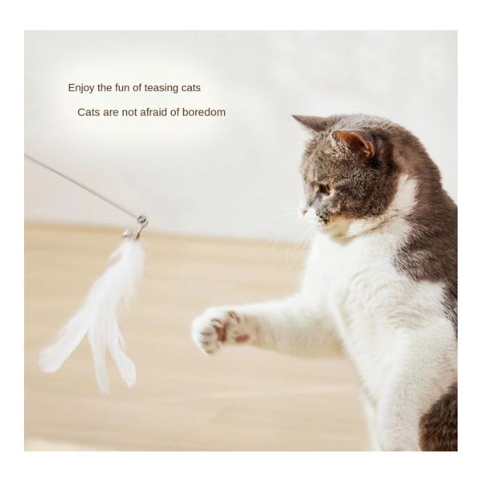 يمكنك استخدام لعبة عصا ريش القطط لتجعل قطتك تتحرك وتمارس الرياضة. إنها طريقة جيدة للحفاظ على صحة قططك ومناسبتها للحياة. استمتع بالتمرين المضحك مع قطتك.