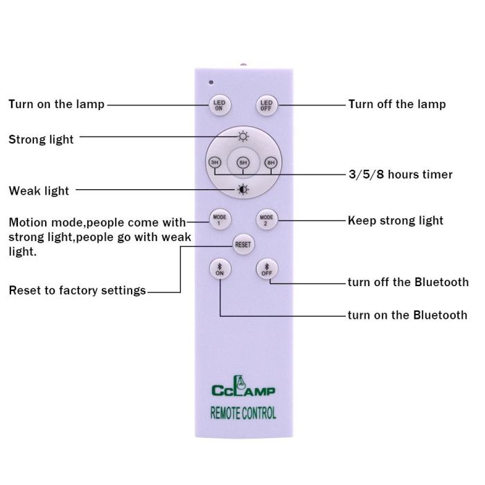 - تحكم كامل عبر ريموت للتحكم في شدة الإضاءة والمؤقت والبلوتوث