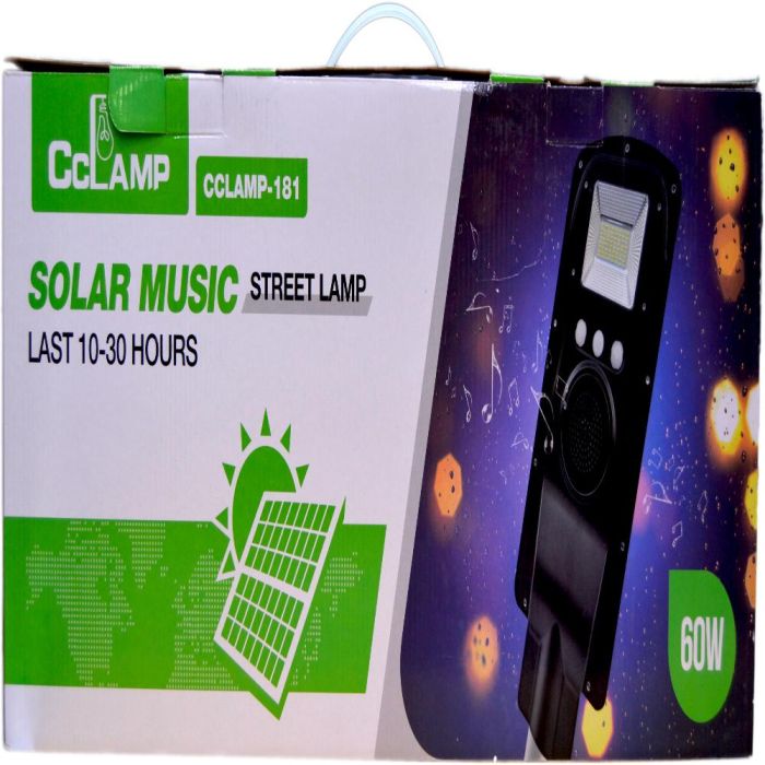- مصباح خارجي 60 واط بالطاقة الشمسية بمستشعر حركة ومكبر صوت بلوتوث من CCLAMP