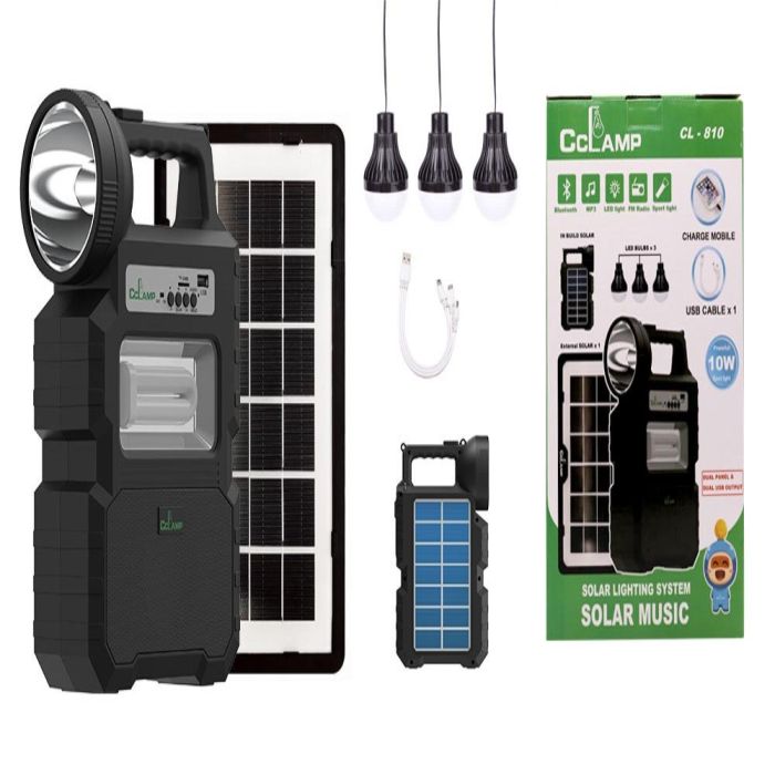 لا تنقطع عن الضوء أو الطاقة مرة أخرى مع نظام الإضاءة الشمسي المتكامل CCLAM. تم تجهيز هذه الوحدة القوية ببطارية ليثيوم بسعة 6000 مل أمبير ولوحتين شمسيّتين (داخلية وخارجية) للشحن الموثوق. إنه مثالي للتخييم، وحالات الطوارئ، أو الإضاءة في الأماكن البعيدة، حيث يتميز بكشاف LED بقوة 10 واط ومكبر صوت بلوتوث، ومشغل MP3، وراديو FM.