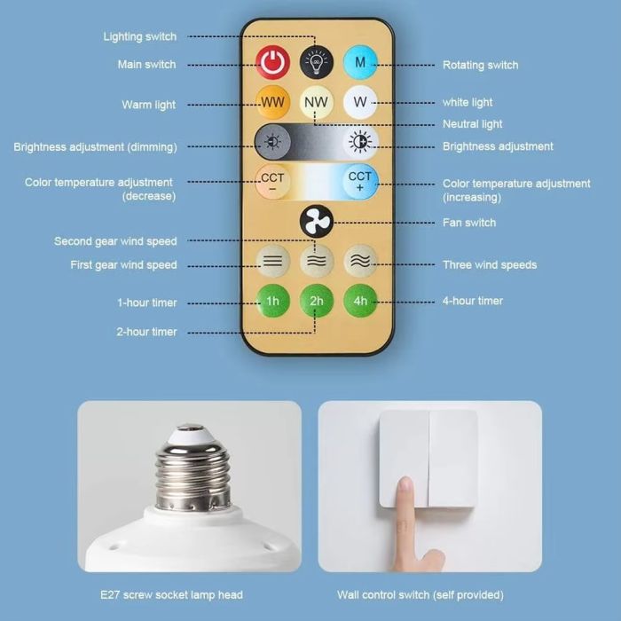 توفر تجربة تهوية وإضاءة متكاملة، مع 3 سرعات للهواء وإضاءة قابلة للتعديل، مع تحكم كامل عبر ريموت أو لوحة الحائط. تصميم متين وسهل التركيب يجعل المروحة مثالية للاستخدام اليومي في المنزل أو المكتب مع توفير أجواء منعشة ومريحة باستمرار.