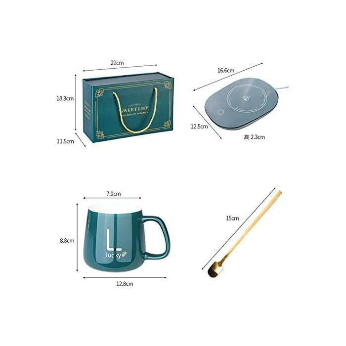 - مج حراري من السيراميك سعة 370 مل مع سخان وملعقة