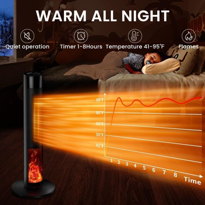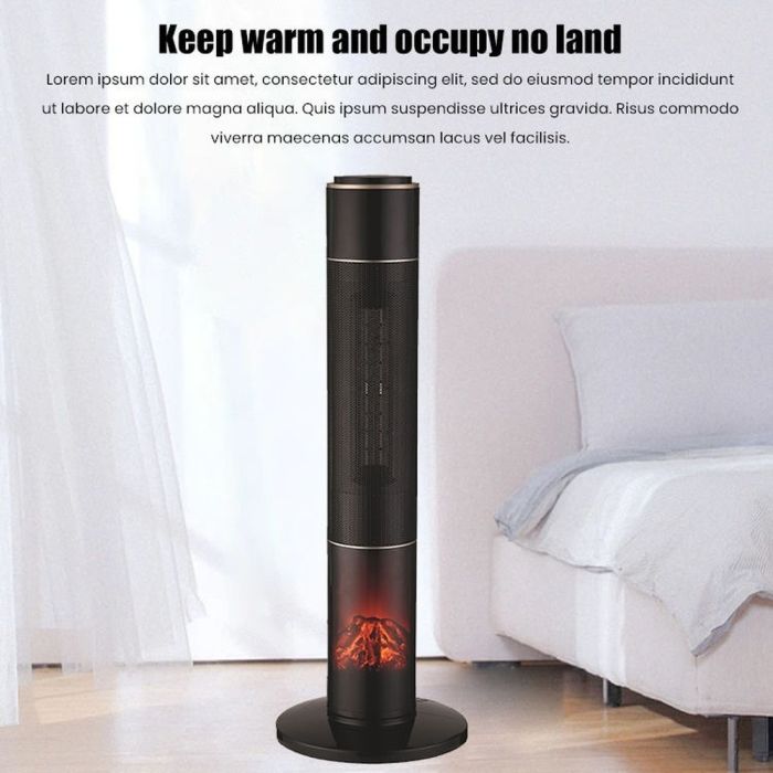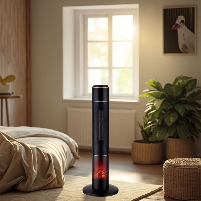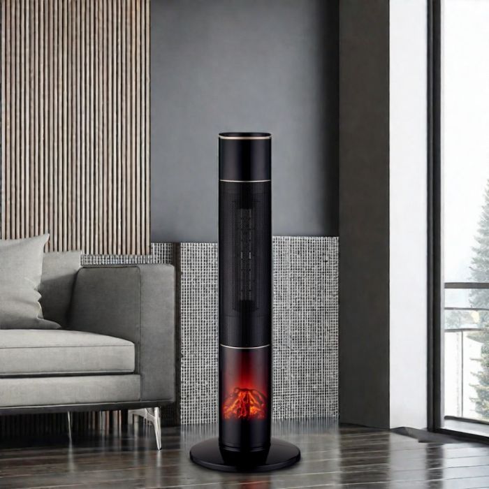 دفء فوري ومحيطي مع لمسة من الأناقة! هذه المدفأة البرجية تملأ غرفتك بالدفء بسرعة وكفاءة بفضل تقنية السيراميك القوية، بينما يضيف تأثير اللهب الثلاثي الأبعاد جواً مريحاً وجذاباً. تحكم في كل شيء بدقة عبر الريموت، مع ضمان الأمان المطلق.