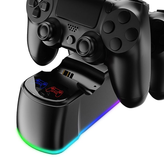 محطة شحن لوحدة تحكم PS4 مع إضاءة RGB