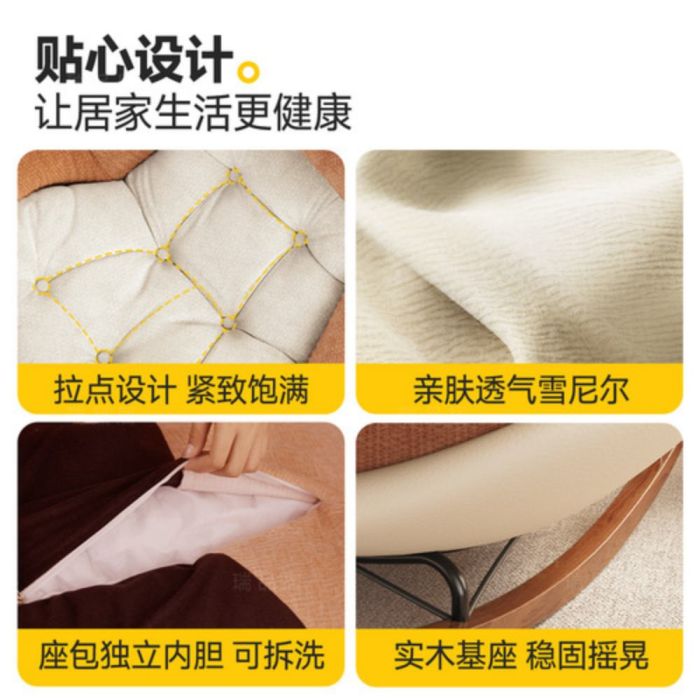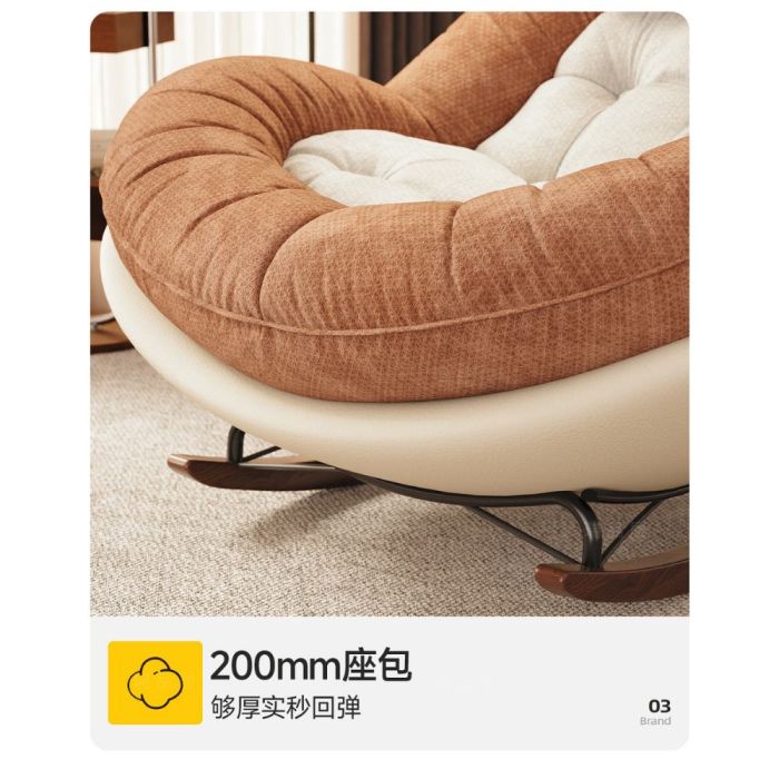كرسي استرخاء هزاز من الشينيل مصنوع من خامات ناعمة داعمة، يوفر إحساساً مريحاً مع دعم متوازن للجسم، قاعدة هزازة مستقرة بحركة سلسة، مناسب لغرفة المعيشة أو الشرفة، تصميم أنيق يعزز أجواء الراحة في المنزل