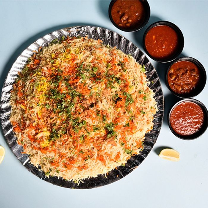 استمتع ببرياني الدجاج أو اللحم لأربعة أشخاص في مطعم نِقصة حمد. وجبة مثالية للمشاركة مع العائلة أو الأصدقاء، تتميز بالأرز الفاخر