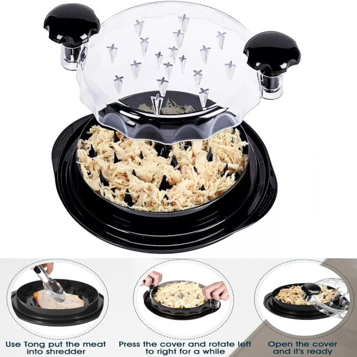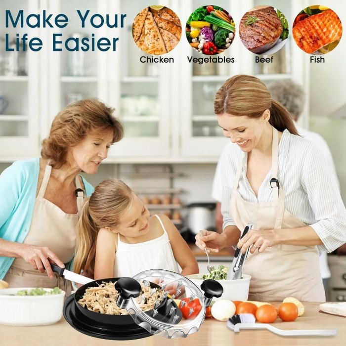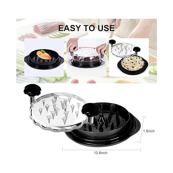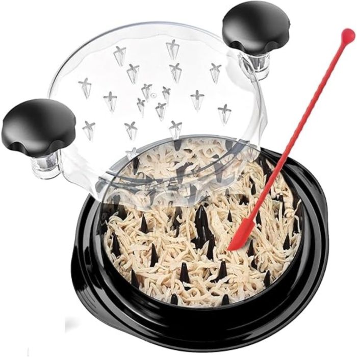 قطاعة الدجاج تقوم بتسهيل عملية تقطيع اللحوم المطبوخة. شفرات حادة ومقبض مريح يتيح لك التقطيع بسهولة وسرعة. مثالية لتحضير الوجبات العائلية أو تجهيز الطعام للحفلات، مما يوفر عليك الوقت والجهد