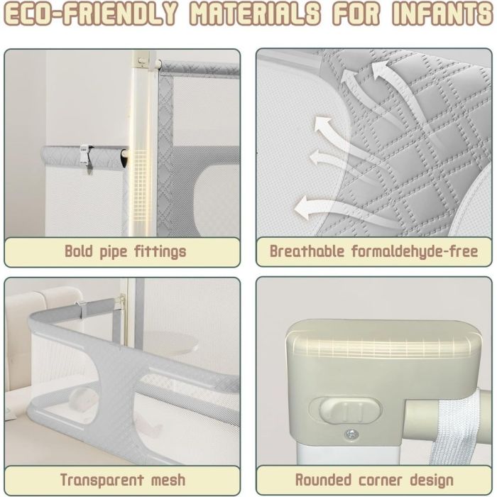 - تصميم 3 في 1 يجمع بين سرير أطفال، سرير جانبي وحاجز للأطفال