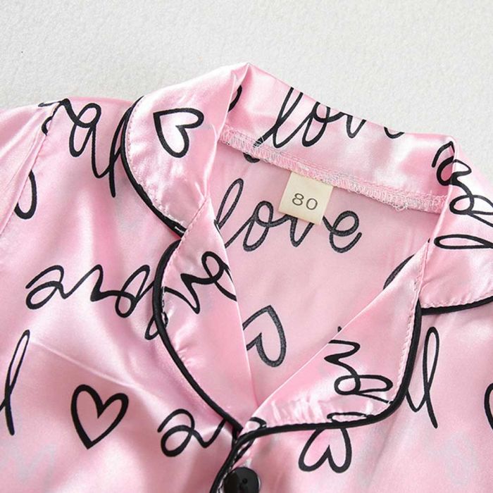 طقم بيجامة قطن بأكمام طويلة بتصميم Love للأطفال