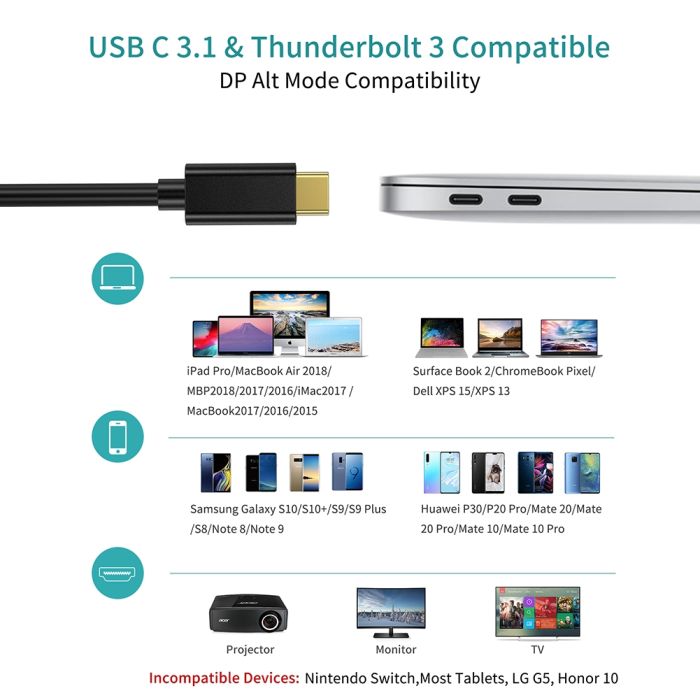 يقوم كيبل USB-C إلى HDMI بتوصيل أجهزة USB-C بالشاشات التي تدعم HDMI. مناسب للتنقل في رحلات العمل أو في أي مكان. مريح للغاية للاستخدام بمجرد التوصيلوهو الرفيق المثالي لمختلف المناسبات