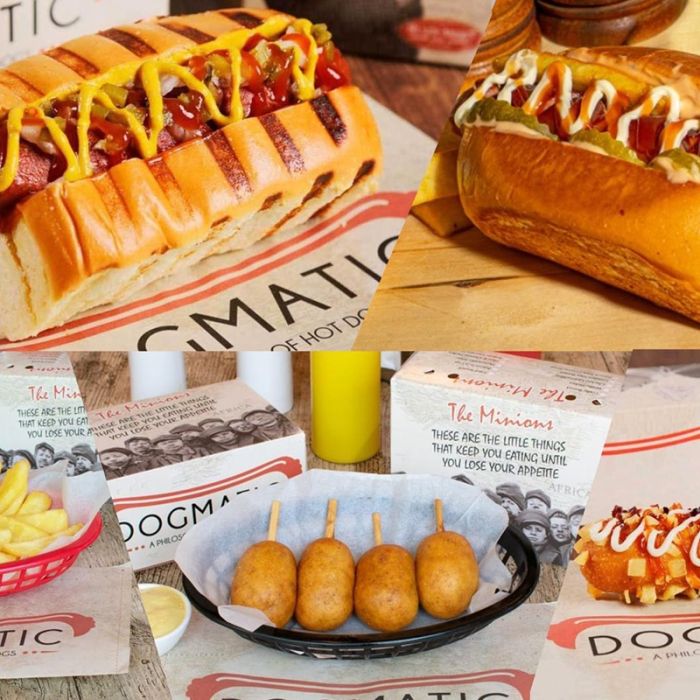 - Dogmatic لديه فلسفة خاصة لعمل الهوت دوغ – والفكرة الأساسية كانت في تقديم الهوت دوغ بشكل مختلف للجميع تتماشى مع نفس الخط العالمي بتقديم أطباق منوعة ومختلفة عن الهوت دوغ التقليدي وهذا شيء لم يكن موجودا في الكويت مع كثرة وإزدهار المطاعم فيها.