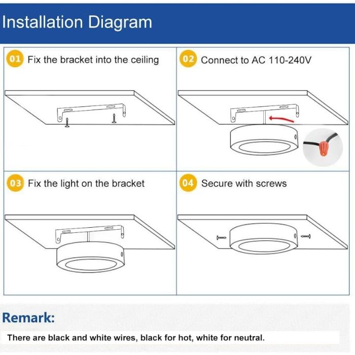 - التركيب: تثبيت سطحي – لا حاجة لسقف مستعار