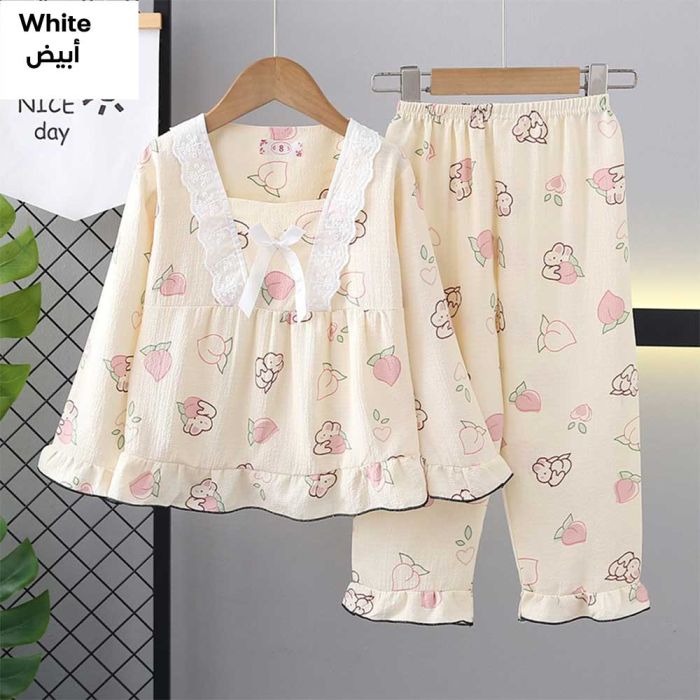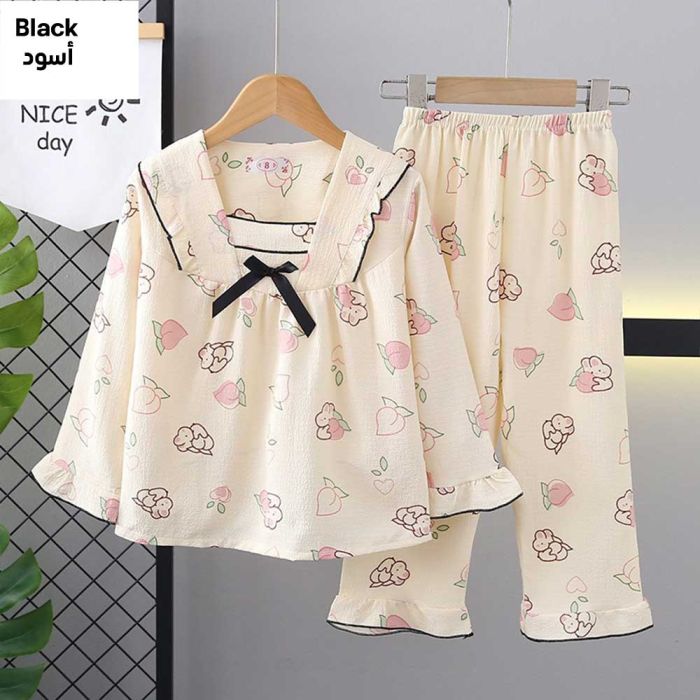- بيجامة خريفي كلاسيكية من القطن بأكمام طويلة للبنات
