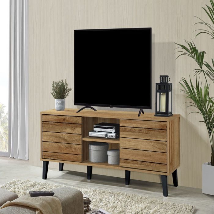 تضفي طاولة التلفزيون الكلاسيكي المريح لمسة من الأناقة والعملية اليومية على مساحة معيشتك. صُممت لتوفير الراحة والسهولة، تحافظ على تنظيم منطقة الترفيه الخاصة بك مع إضافة لمسة كلاسيكية دافئة إلى منزلك
