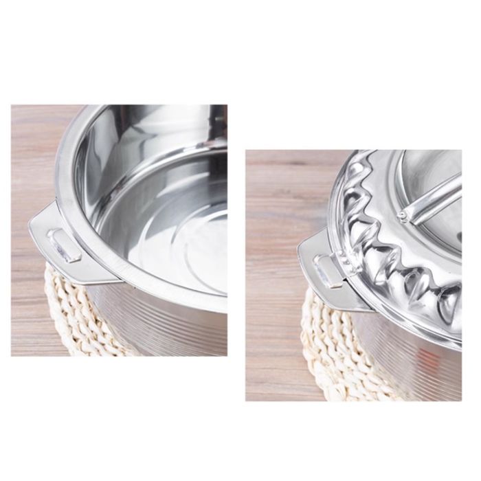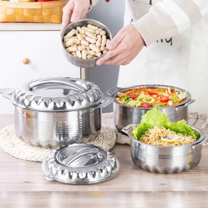 ارتقِ بتجربة تناول الطعام مع طقم أواني الطهي الساخن الكلاسيكي المصنوع من الستانلس ستيل. هذا الطقم المكون من 3 قطع مصنوع من الستانلس ستيل عالي الجودة، مما يضمن المتانة والاحتفاظ بالحرارة لوجبات مثالية في كل مرة. مثالي للتجمعات العائلية أو حفلات العشاء، حيث يتضمن كل ما تحتاجه لتجربة أواني طهي ساخنة شهية. أنيق وسهل التنظيف، إنه الإضافة المثالية لأي مطبخ!