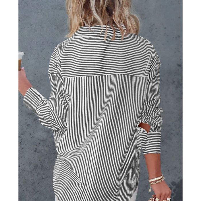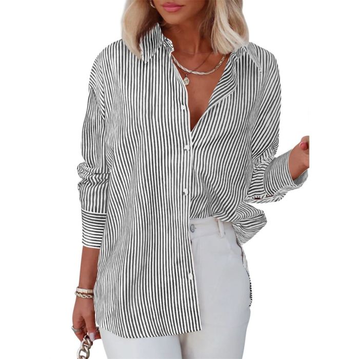 - قميص مخطط كلاسيكي بأكمام طويلة للسيدات