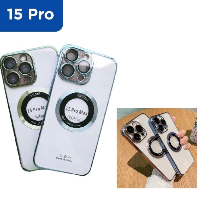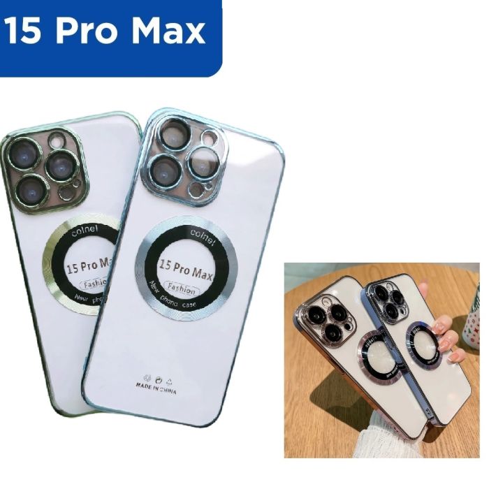 - غطاء حماية مغناطيسي شفاف لهاتف أيفون 15 برو أو 15 برو ماكس ألوان متنوعة