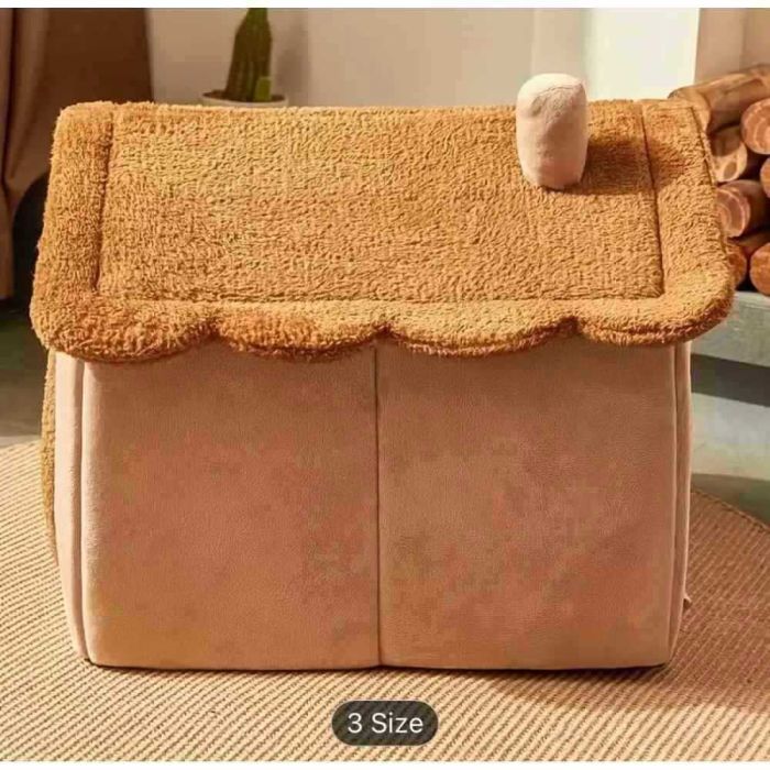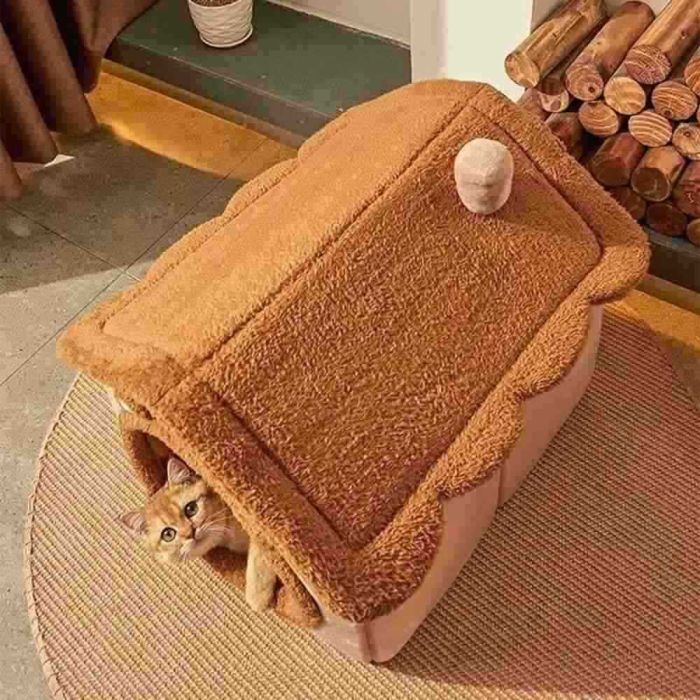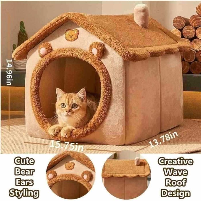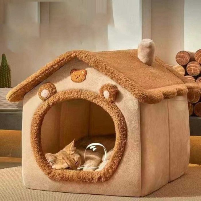 - بيت مغلق للقطط والكلاب بتصميم الدب البني
