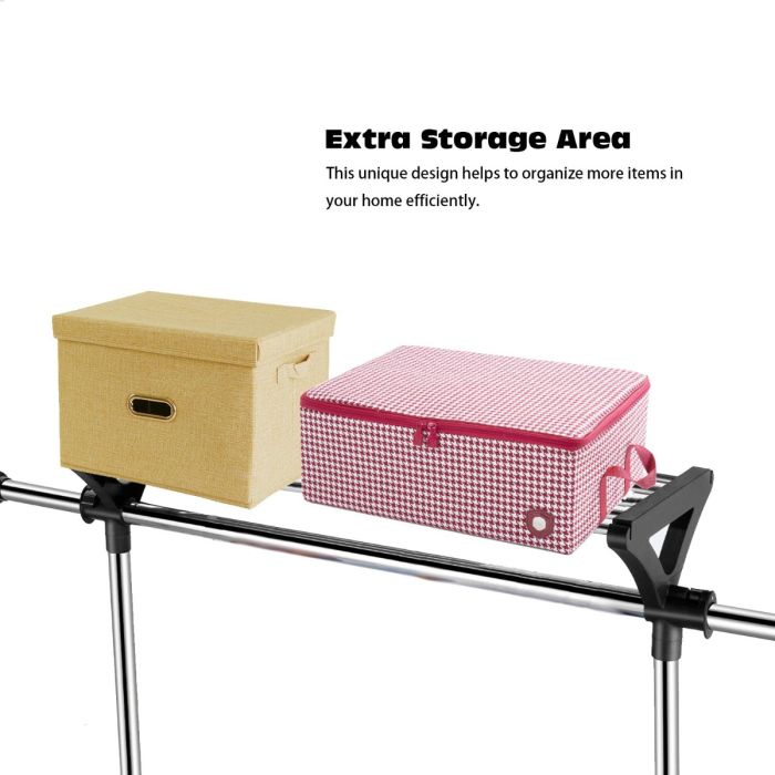 حافظ على خزانة ملابسك أنيقة ومساحتك منظمة مع رف الملابس هذا المزود بأرفف علوية. علق ملابسك وحقائبك وقبعاتك أو ملابسك المطوية فوقه - إنه منظم مثالي متعدد الاستخدامات لأي غرفة!