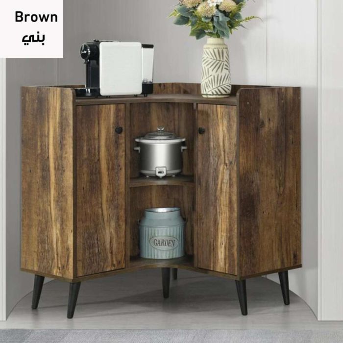- خزانة ركن خشبية مستقلة مخصصة لعمل ركن قهوة مرتب.