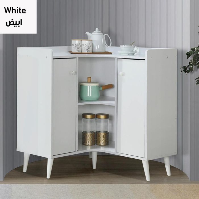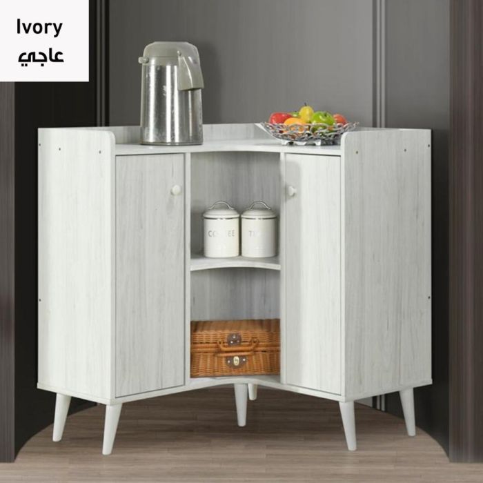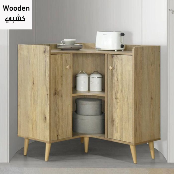 خزانة ركن خشبية مستقلة مصممة لتكوين ركن قهوة مرتب مع إضافة تخزين ديكوري أنيق لغرفة المعيشة أو أي مساحة داخلية. شكلها المناسب للزوايا يساعد على استغلال المكان بشكل أفضل، والدرج الكبير يمنحك مساحة منظمة لتخزين مستلزمات القهوة مثل الكبسولات والملاعق والسكر والأكواب والإكسسوارات الصغيرة حتى يبقى السطح مرتبًا. تصميمها قوي وثابت للاستخدام اليومي، كما تضيف مساحة تخزين يحتاجها أي مكان مع لمسة خشبية دافئة تنسجم بسهولة مع مختلف الغرف والديكورات.