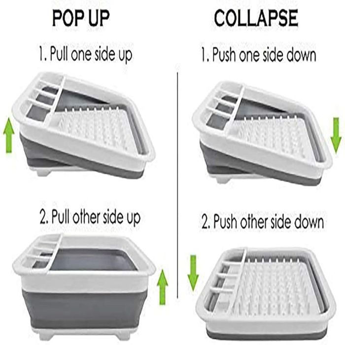 اجعل تجفيف أطباقك سريعًا ومرتبًا مع رف تجفيف الأطباق القابل للطي! تصميم مدمج يوفر المساحة ويضمن تهوية جيدة للأطباق بعد الغسل، خيار مثالي للمطابخ الصغيرة.