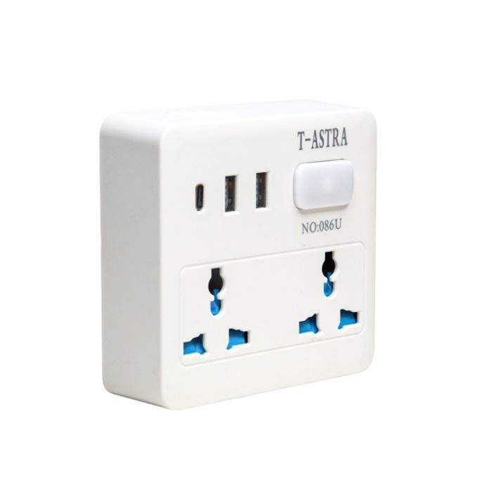 - وصلة اشتراك كهربائي مدمجة مع 3 منافذ USB للشحن السريع
