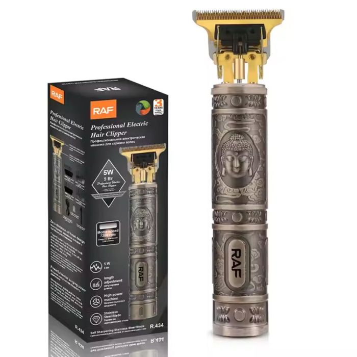 احصل على تجربة حلاقة دقيقة واحترافية في منزلك مع ماكينة الحلاقة RAF. تصميم عملي مع شفرات ستانلس ستيل ذاتية السن تدوم طويلًا، وملحقات كاملة لتمنحك إطلالة أنيقة في كل مرة.