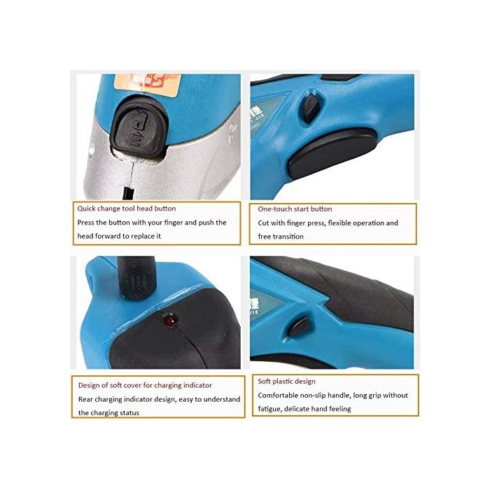 يوفر المقص الكهربائي اللاسلكي قوة قطع دقيقة مع راحة التصميم اللاسلكي. مثالي للحرف اليدوية والخياطة والمهام المنزلية، حيث يقطع هذا المقص بسهولة مواد مختلفة، مما يوفر تشغيلًا سلسًا وسهلاً. مثالي لكل من هواة الأعمال اليدوية والمحترفين.