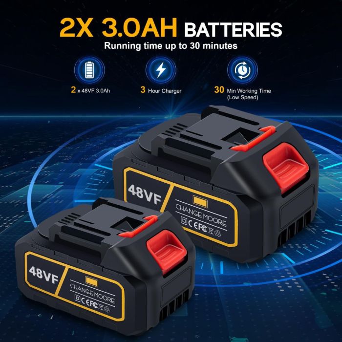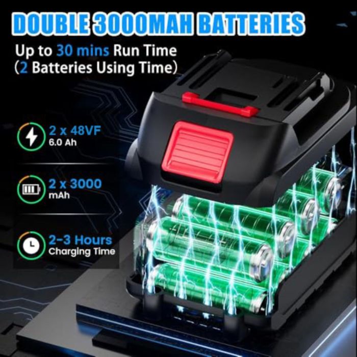 - بطاريتان قابلتان للشحن بسعة 3000 مللي أمبير لكل بطارية