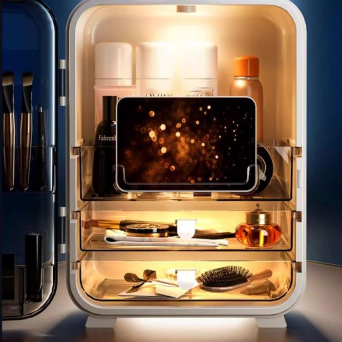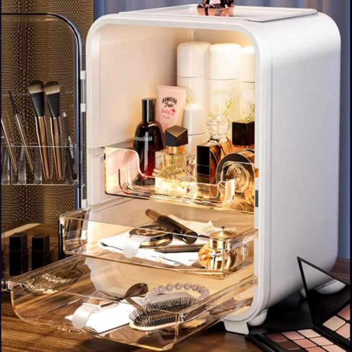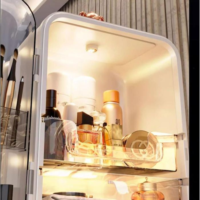 - أرفف واسعة لمستحضرات التجميل ومنتجات العناية بالبشرة