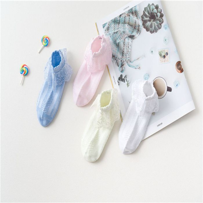 صفقة اليوم هي جوارب قطن مزينة بالدانتيل بألوان متنوعة للبنات - 4 حبة