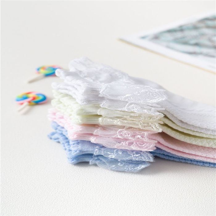 - جوارب قطن مزينة بالدانتيل بألوان متنوعة للبنات - 4 حبة