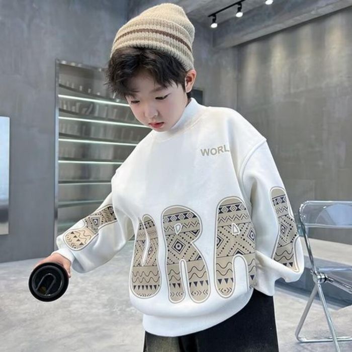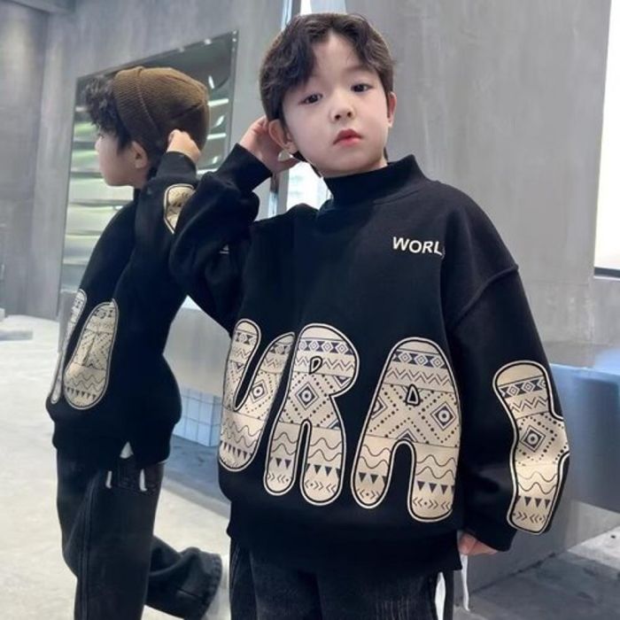 تيشيرت ولادي قطن مبطن برقبة مرتفعية وأكمام طويلة