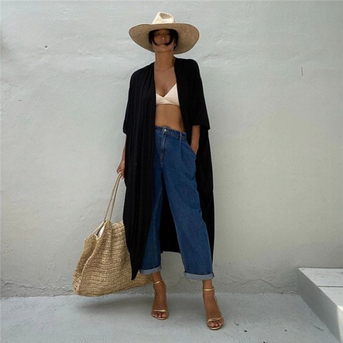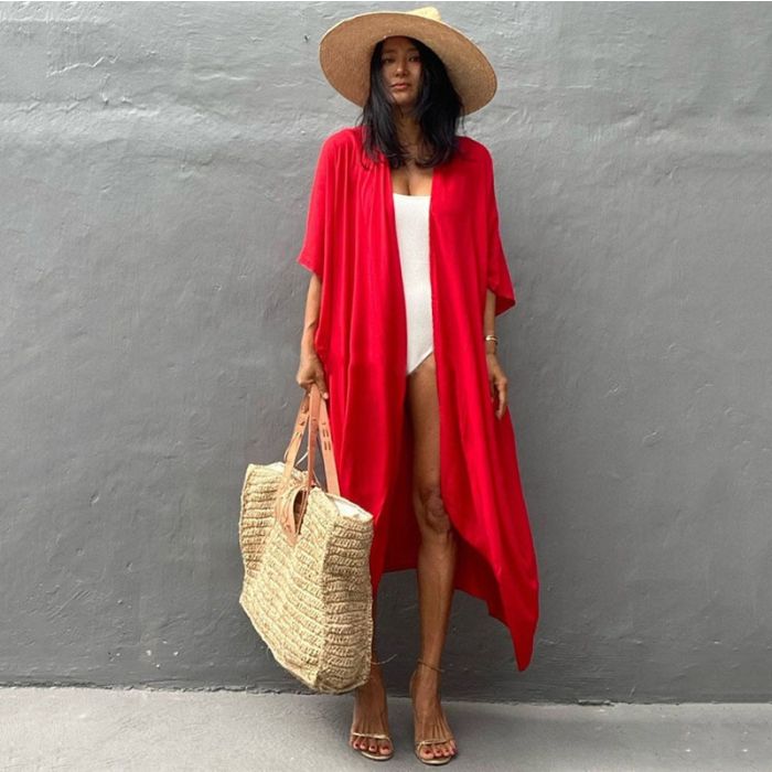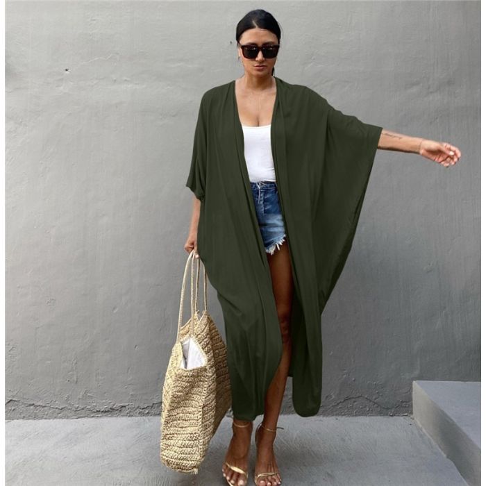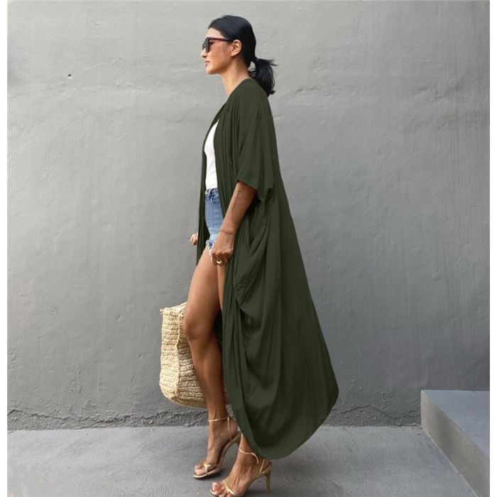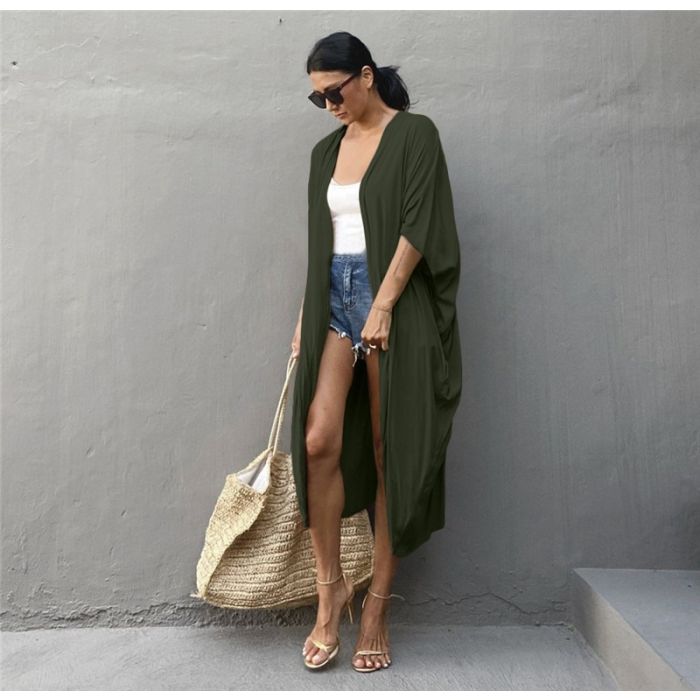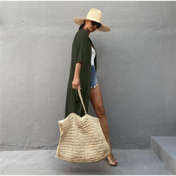 استمتعي بأناقة لا مثيل لها على شاطئ البحر مع الكارديجان الرقيق هذا. يتميز بتصميمه الانسيابي والخفيف الذي يوفر تغطية أنيقة وحماية من الشمس. يضفي لمسة عصرية وعملية، مما يجعله القطعة المثالية لارتدائها فوق ملابس السباحة أو البيكيني.صفقة اليوم هي كارديجان سادة مفتوح مع حزام للبحر للسيدات