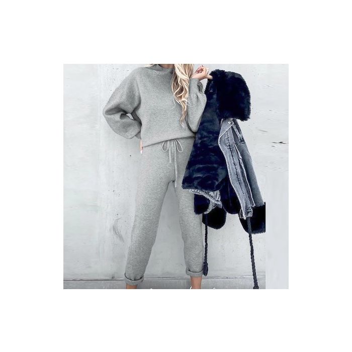 طقم شتوي أنيق ومريح بتصميم عملي يناسب الإطلالات الكاجوال اليومية. يتميز بخامة دافئة توفر لكِ راحة وأناقة في الأجواء الباردة، مثالي للاستخدام في المنزل أو الخروج بخفة وبأسلوب عصري.صفقة اليوم هي طقم سويت شيرت وسروال مريح بأكمام طويلة من الصوف