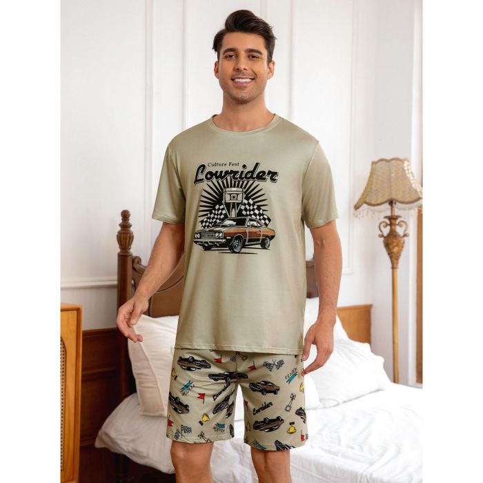 - طقم بيجامة شورت بأكمام قصيرة وتصميم Culture Fest للرجال